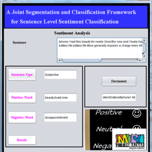 A Joint Segmentation and Classification Framework for Sentence Level Sentiment Classification Abstract? A joint segmentation and classi?cation framework for sentence-level sentiment classi?cation. It is widely recognized that phrasal information is crucial< Final Year Projects 2016 > critical for sentiment classi?cation. However, existing sentiment classi?cation algorithms typically split a sentence as a word sequence, which does…