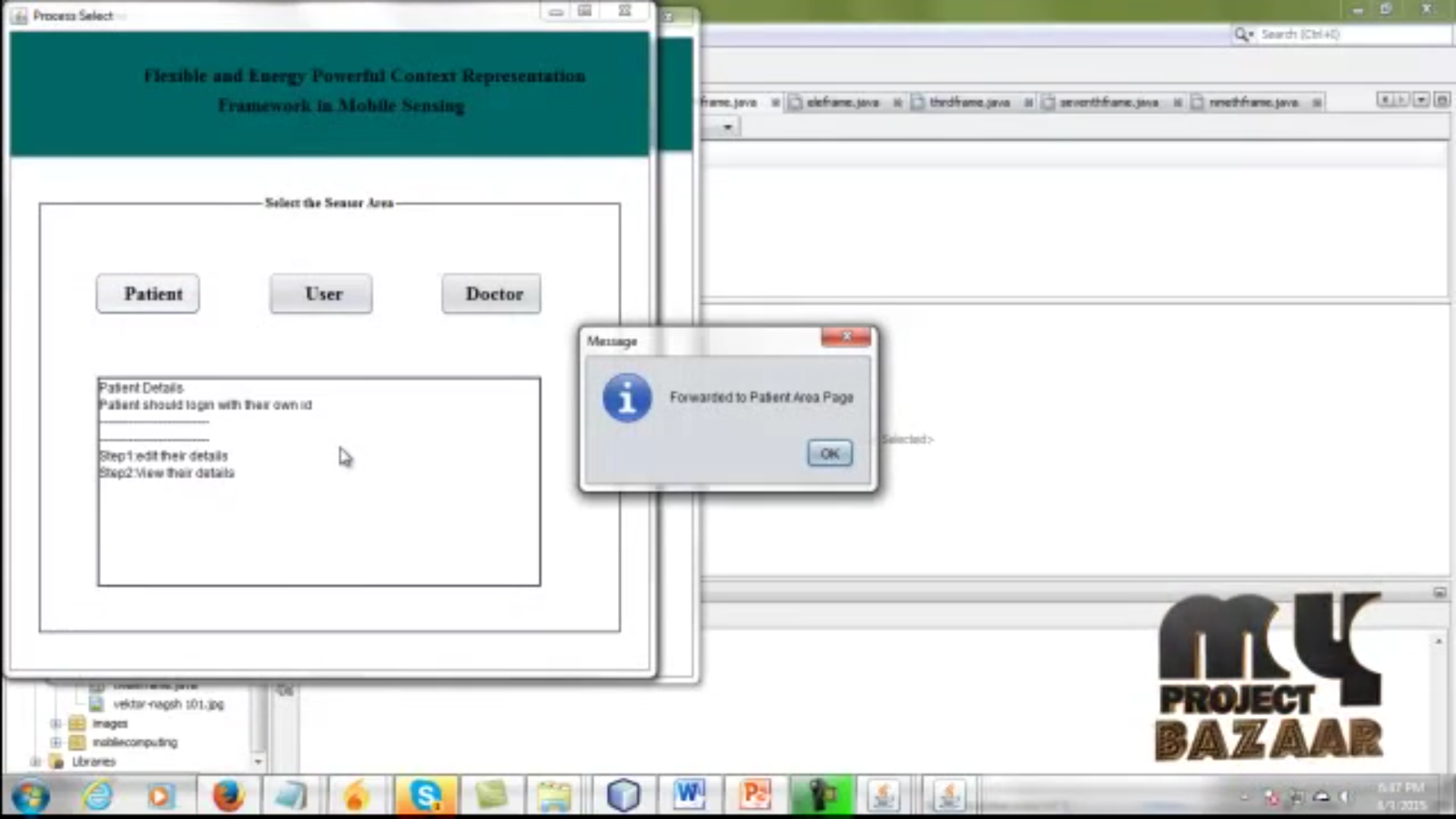 Abstract? Adaptive and Energy Efficient Context. This paper presents a novel framework that includes an inhomogeneous (time-variant) Hidden Markov Model (HMM) and learning from data concepts. The framework either recognizes or estimates user contextual inferences called `user states’ within the concept of Human Activity Recognition (HAR) for future context-aware < Final Year Projects > applications. Context-aware applications require continuous data acquisition and interpretation from one or more sensor reading(s). Therefore, device battery lifetimes need to be extended due to the fact that constantly running built-in sensors deplete device batteries rapidly. In this sense, a framework is constructed to fulfill requirements needed by applications and to prolong device battery lifetimes. The ultimate goal of this paper is to present an accurate user state representation model, and to maximize power efficiency while the model operates. Most importantly, this research intends to create and clarify a generic framework to guide the development of future context-aware applications. Moreover, topics such as user profile adaptability and variant sensory sampling operations are examined. The proposed framework is validated by simulations and implemented in a HAR-based application by the smartphone accelerometer. According to the results, the proposed framework shows an increase in power efficiency of 60% for an accuracy range from 75% up to 96%, depending on user profiles.