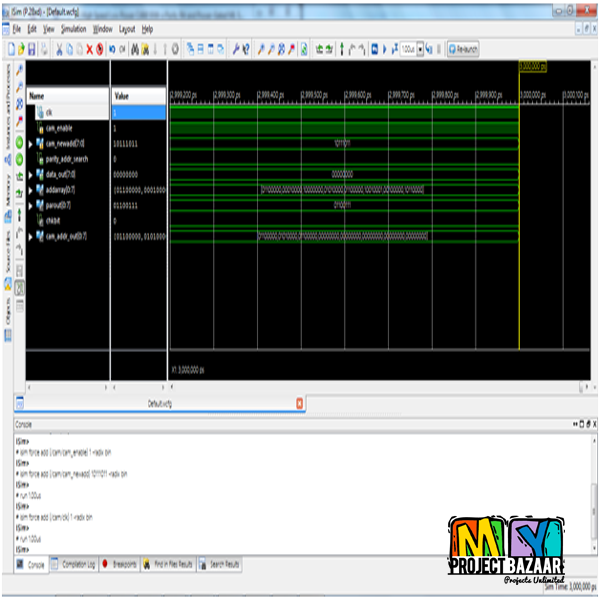 Abstract-A High Speed Low Power CAM With a Parity Bit andPower-Gated ML Sensing. Content addressable memory (CAM) offers high-speed search function in a single clock cycle. Due to its parallel match-line (ML) comparison, CAM is power-hungry. Thus, < Final Year Projects > robust, high-speed and low-power ML sense amplifiers are highly sought-after in CAM designs. In this paper, we introduce a parity bit that leads to 39% sensing delay reduction at a cost of less than 1% area and power overhead. Furthermore, we propose an effective gated-power technique to reduce the peak and average power consumption and enhance the robustness of the design against process variations. A feedback loop is employed to auto-turn off the power supply to the comparison elements and hence reduce the average power consumption by 64%. The proposed design can work at a supply voltage down to 0.5 V.