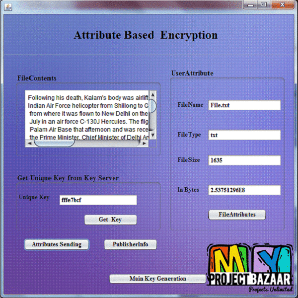 Abstract? Revisiting Attribute-Based Encryption with Verifiable Outsourced Decryption. Attribute-based encryption < Final Year Projects 2016 > ABE [1] is a promising technique for ?ne-grained access control of encrypted data in a cloud storage, however, decryption involved in ABEs is usually too expensive for resource-constrained front-end users, which greatly hinders its practical popularity. In order to reduce the decryption overhead for a user to recover the plaintext, Green et al. [2] suggested to outsource the majority of the decryption work without revealing actually data or private keys. To ensure the third-party service honestly computes the outsourced work. Lai et al. provided a requirement of veri?ability to the decryption of ABE [3], but their scheme doubled the size of the underlying ABE cipher text and the computation costs.